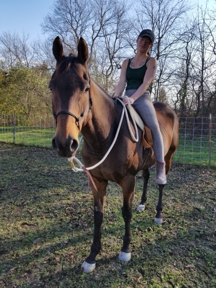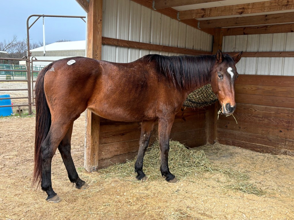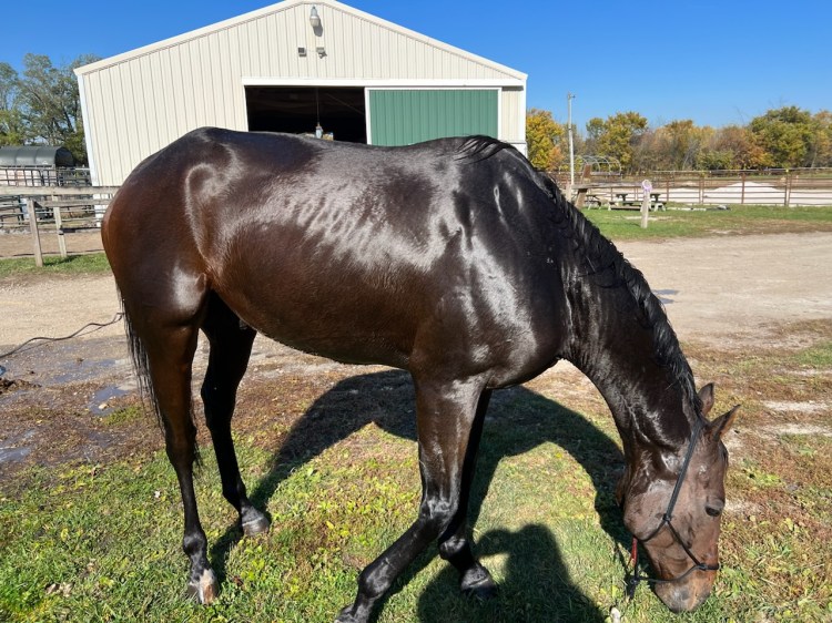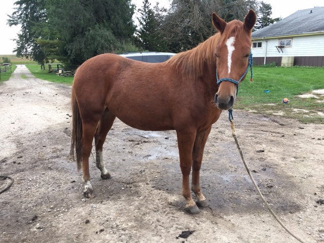 19 year old Thoroughbred mare. She is looking for an intermediate rider who will be patient with her. If you show her kindness – she will be a lovely companion.