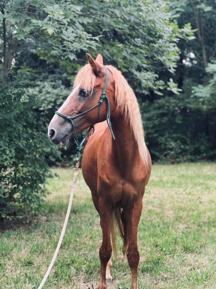 Arabian/Turkman/Paso Fino cross mare who can go for days! This gorgeous, chestnut mare is only 8 years old and has a great start (W/T/C) under saddle and come a long way. She REQUIRES an advanced rider who can keep her mind engaged and work with her often. Miss Me gets distracted and finds it very difficult to refocus so she needs someone who can help her work on focus and confidence. Miss Me is a beautiful mover and knows all the ground games. She would be a great project for an eventer or endurance rider! Message Journey Home Equine Rescue for more information and to meet this little beauty!